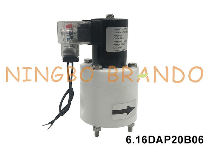 3/4 "PTFEAnti-corrosionValve solénoïde résistante aux acides alcalins et aux produits chimiques 24V 110V 220V